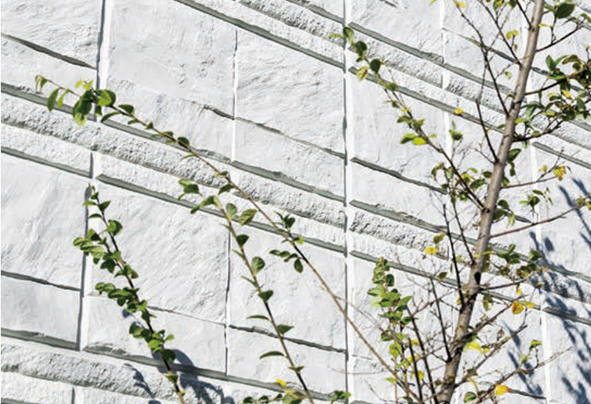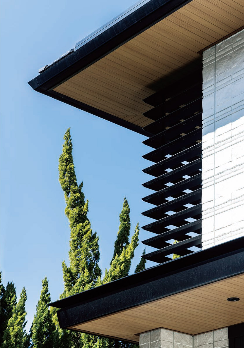 外観デザインに変化をつけるルーバーが印象的。外壁には彫の深いベルサイクスを採用