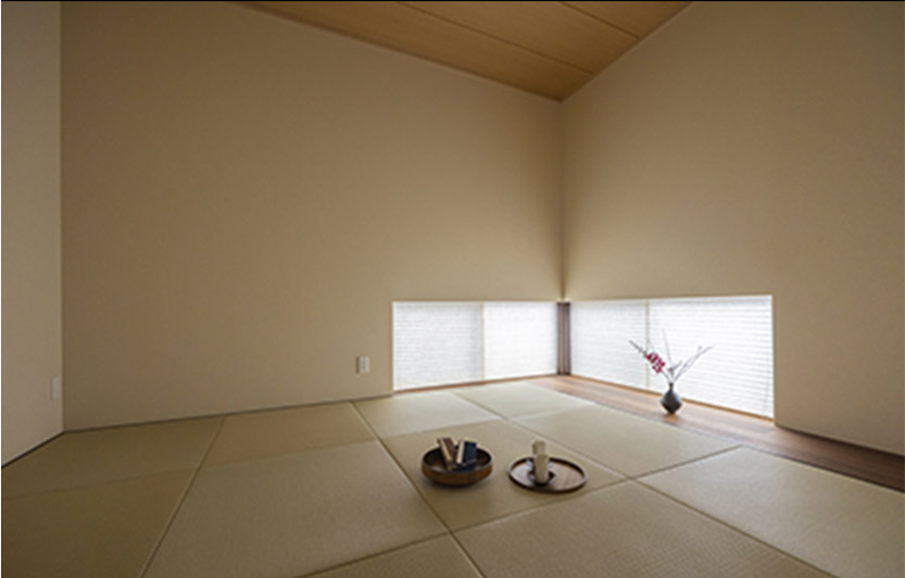 南側(cè)の道路に面した位置にある和室。地窓を設(shè)けて自然の光を取り込みつつ、プライバシーに配慮しています。來客時は、リビングを通らず玄関から直接和室へ入ることが可能です。