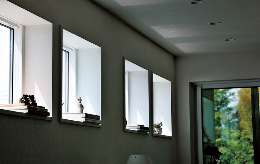 「好きな雑貨や絵畫で空間を彩り、暮らしとともにアレンジできるように」というご希望をおもちでした。そこで、リビングは小物やアート作品が映えるよう、白とウォルナットのナチュラルなトーンで統一しました。また、窓枠を深めに設定し、ディスプレイスペースとしても使えるように。時間の移り変わりによって小物が落とす影も変化し、見るたびに異なる雰囲気が感じられます。