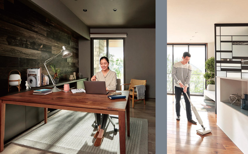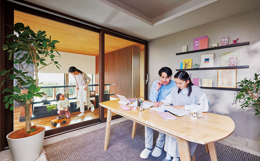 より明るく開放感あふれる部屋を演出。子どもを見守りながらの作業など、隣室と関わりを斷つことなく、一人ひとりの自由な時間を実現します。