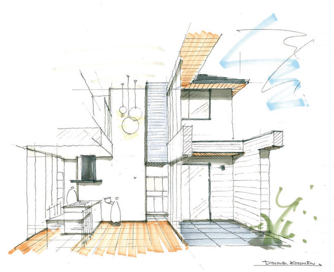 設(shè)計(jì)擔(dān)當(dāng)の髭(ひげ)が描いた、ダイニングキッチンのスケッチ
