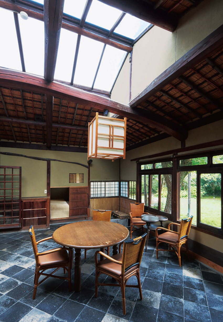 谷崎潤一郎や武者小路実篤など、白樺派の巨匠たちも集ったサンルーム。庇の垂木には北國から取り寄せた白樺材が用いられています