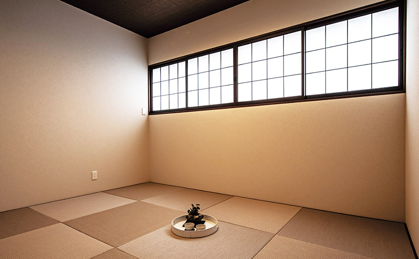 昔ながらの和室は構成要素が多く、そのまま現代の住まいに取り入れるとモダンな印象になりづらいです。そこで、鴨居や長押、障子の格子、畳の縁など、縦?橫のラインを強調する要素を減らしたデザインにすることで、すっきりと洗練された空間に仕上げられます。