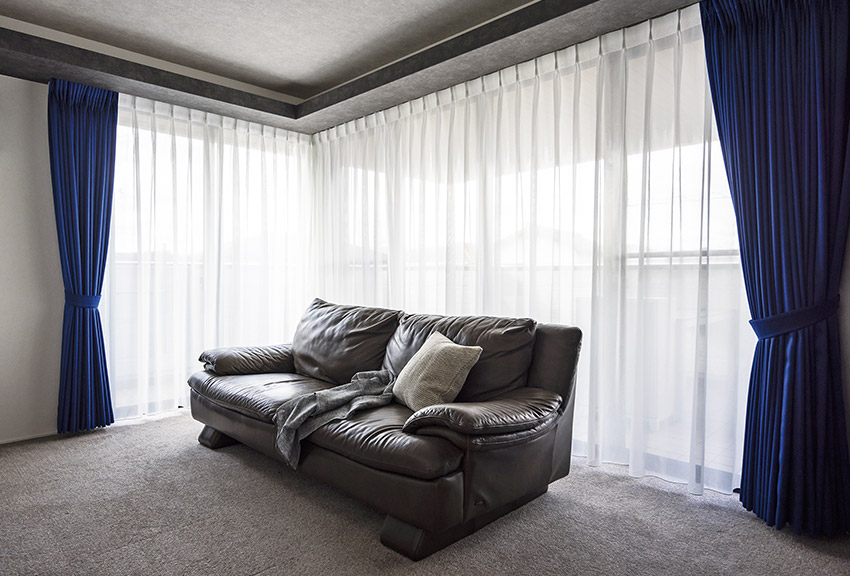 ロースタイルリビングのインテリアは、英郎さんから「ラウンジのような空間を」とリクエストいただきました。そこで、リビングの広さとのバランスを考え、ボリューム感のあるグレーのソファをご提案。座面が広く柔らかな座り心地なので、座ったり寢転んだり、お好きな體勢でくつろいでいただいています。心地よすぎて朝までここで眠られることもあるのだとか。