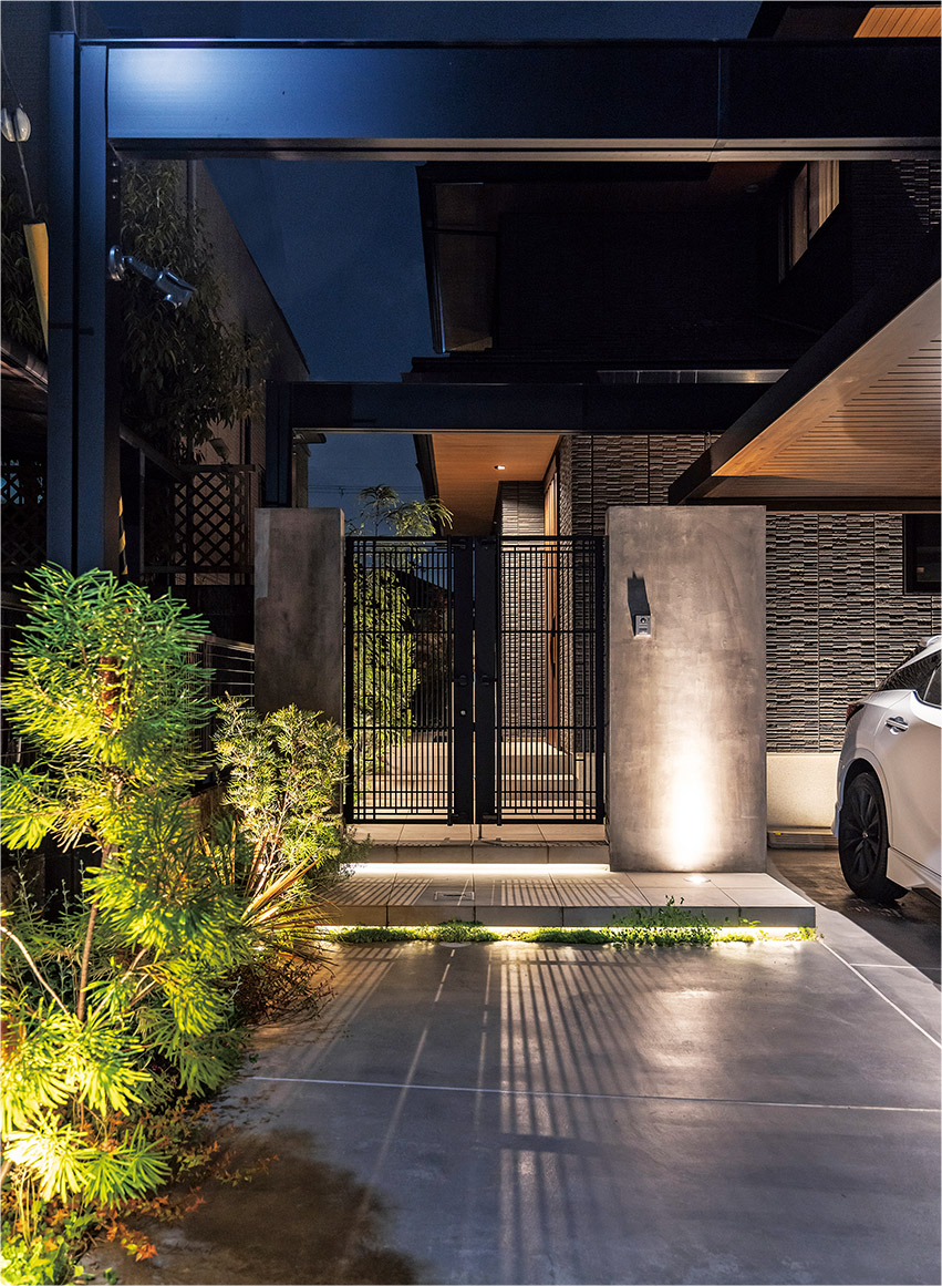 モダンなアプローチや珍しい葉姿の植栽が目を引くYさま邸ですが、