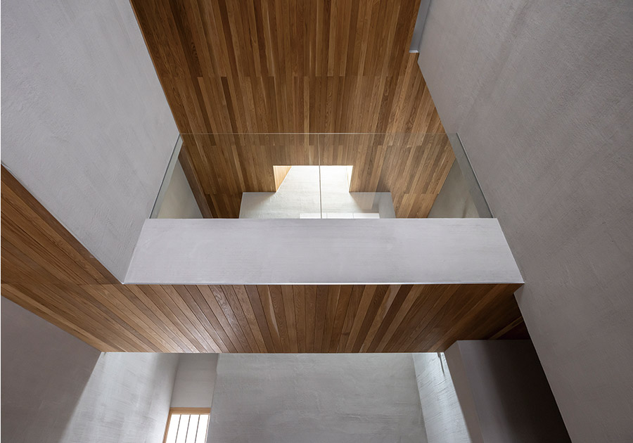 家全體で一體感を持たせたいというご要望があり、壁や床や天井などの內(nèi)裝材を、1?2階ともにできるだけ統(tǒng)一しました。調(diào)濕や消臭効果の高い塗り壁により、家全體が清々しい空気に満たされます。