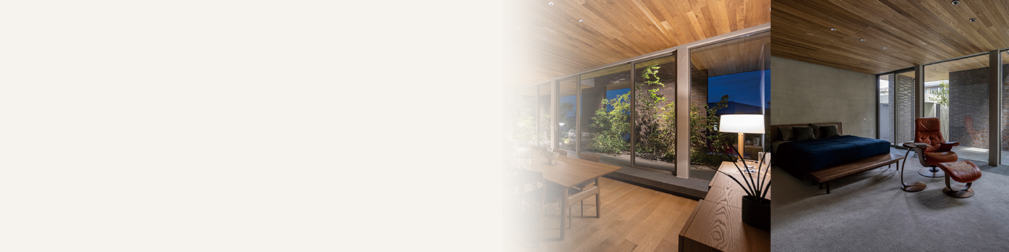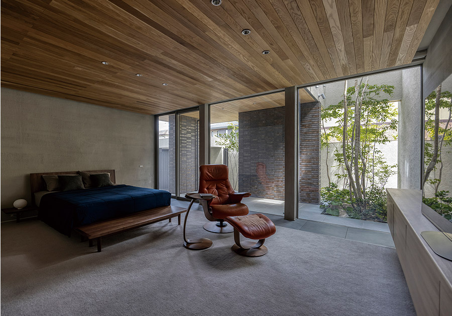 仕事で忙しい日常を送る夫のYさんは、わが家を心置きなくくつろいだり楽しんだりできる場(chǎng)所にしたいとお考えになりました。そこで、1階に設(shè)けたYさん用の寢室は前庭に面した位置に設(shè)け、ベッドからも見える位置に高木を植えました。床は溫かみのあるカーペット敷きです。