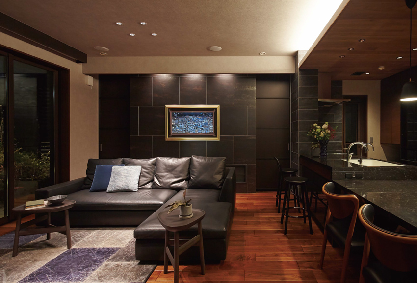 黒を基調としたインテリアがシックで落ち著きある空間を演出し、上質さや特別感を日常に溶け込ませた、くつろぎの住まいが完成しました。