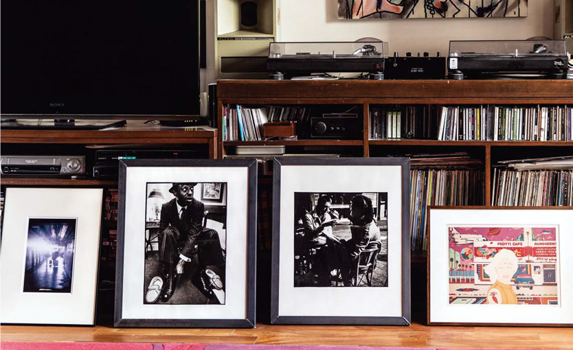 存在感のある大きなアートも、床置きすれば部屋になじみます(artist:右/Ardneks 中央2點/Peter Anderson 左/竹本英樹)