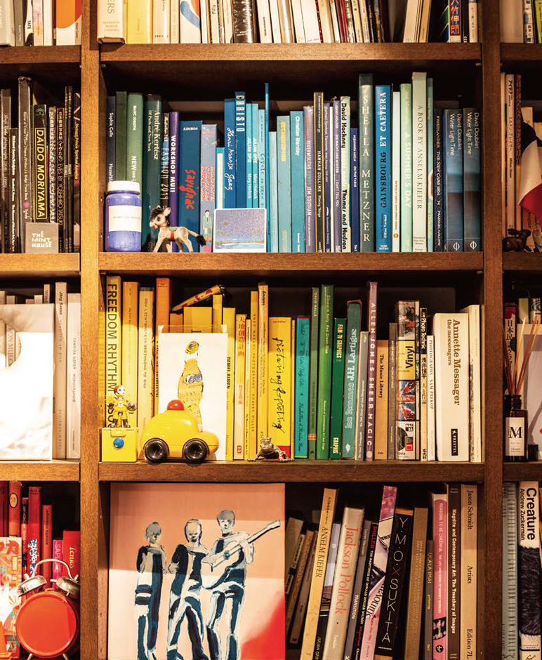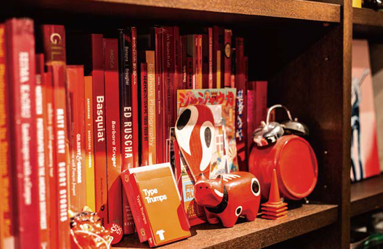 立體、寫真、民蕓など、たくさんのアート作品が本棚を彩ります(寫真artist:倉崎稜希)