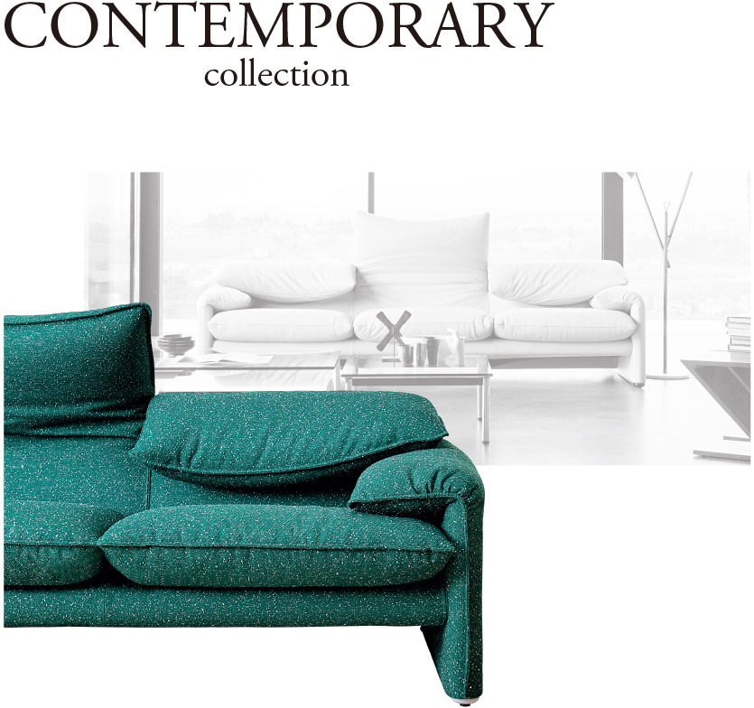 カッシーナには「イ?マエストリコレクション」を含む3コレクションがラインアップされています。一つはヴィコ?マジストレッティやマリオ?ベリーニといった現代を代表するデザイナーとのコラボレーションによる「コンテンポラリーコレクション」。もう一つはカッシーナと同様にイタリアンデザインの歴史に貢獻してきたシモン社の作品を受け継いだ「シモンコレクション」です。