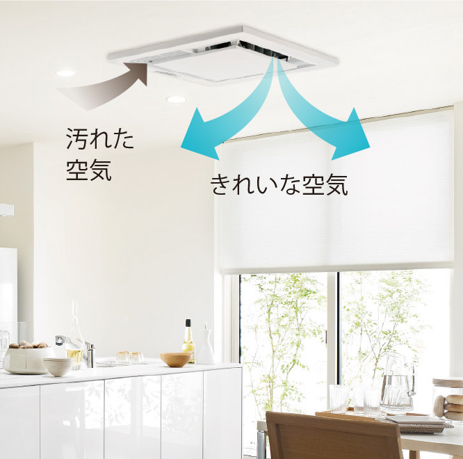 また、ダイワハウス獨自の天井埋込形空気清浄裝置「空気浄化ef(イーエフ)」によって空気清浄と急速排気を実現。さらに、空気を動かすことで浮遊ウイルスやアレルゲン物質を捕捉しやすくなり、部屋の隅々まで効果的にウイルス対策ができます。