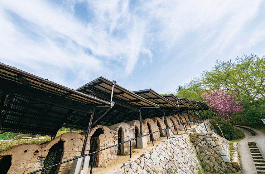 斜面を利用して築かれた16連房の登り窯は、下から上へと火が上がる原理を利用して効率良く熱を伝えていくもので、昭和40年代まで活躍。現(xiàn)在も國(guó)の登録有形文化財(cái)として大切に保存されています