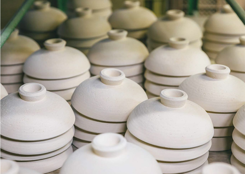 「日本各地に陶磁器の産地はたくさんありますが、地元産の天然の陶土で土鍋を作れるのは伊賀だけです」と八代目當(dāng)主の長(zhǎng)谷康弘さん。産地としての規(guī)模は小さくても、その特徴を最大限に活用するものづくりを誇りに思っておられます。