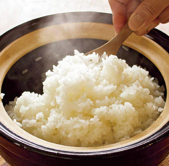 土鍋のご飯が美味しいとは知っていても、火加減が難しく吹きこぼれて後始末が大変というイメージが伴うもの。かまどさんはそんな常識(shí)を覆し、手に取った人に驚きと感動(dòng)を與えます。お米と水を入れて中強(qiáng)火にかけ、穴から蒸気が出たら火を止めてしばらく蒸らすだけ。至って簡(jiǎn)単な手順で、至福のご飯がいただけます。