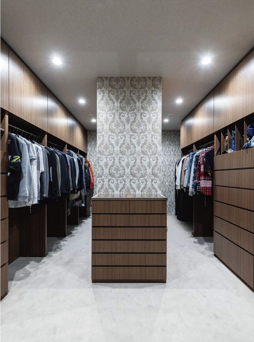 2階にはご夫妻の寢室やお嬢さまの部屋、そしてゲストルームなどを配置。特筆すべきはご家族それぞれに設けた、洋服やバッグなどをまとめて収納できる大容量のウォークインクローゼットです。ブティックのように美しく衣類を収納して、好きな洋服やアクセサリーを選んで裝う喜びを日々味わっていらっしゃいます。