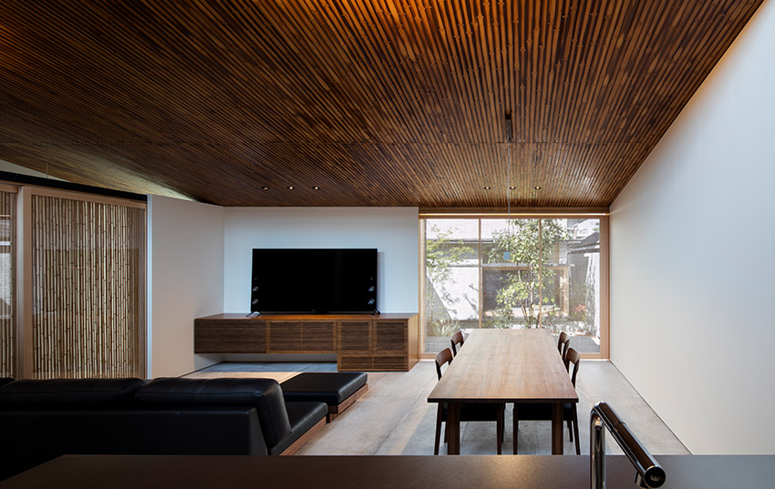 田井中さんのご自宅。天井や建具など各所に竹が用いられています