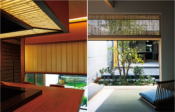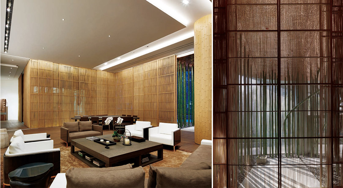 富山?金沢方面の町家に見られる、竹を細く割り、利用した伝統的意匠。空間を區切りながらも、向こう側が透けて見え、空間を広く感じさせることができます。