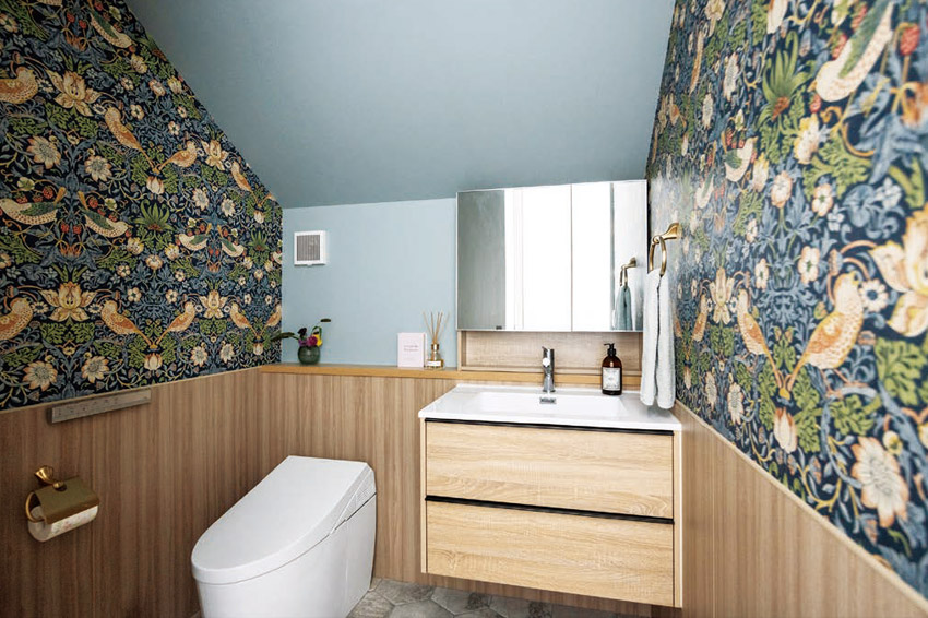 みゆきさんはクラシカルなデザインがお好みであることから、ウィリアム?モリスのボタニカル柄のクロスをご提案。洗面室や2階のトイレなどに採(cǎi)用いただきました。小さな空間ですが、「お?dú)荬巳毪辘伪蚰郡摔工攵趣藲莩证沥悉搿工取ⅳΔ欷筏い匀~をいただいています。