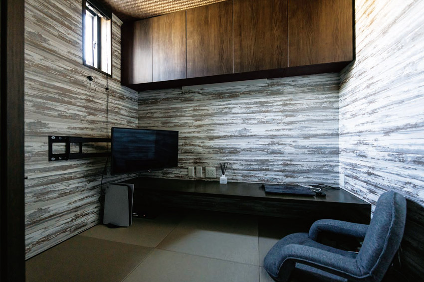 「広くなくても良いので書斎がほしい」というSさんのご希望をかなえた畳敷きのスペースです。掘り込みのカウンターテーブルは、インターネットカフェをイメージしてオーダーされたもの。ここで一人きりの時(shí)間を満?jiǎn)摔丹欷皮い毪饯Δ扦埂?/p>