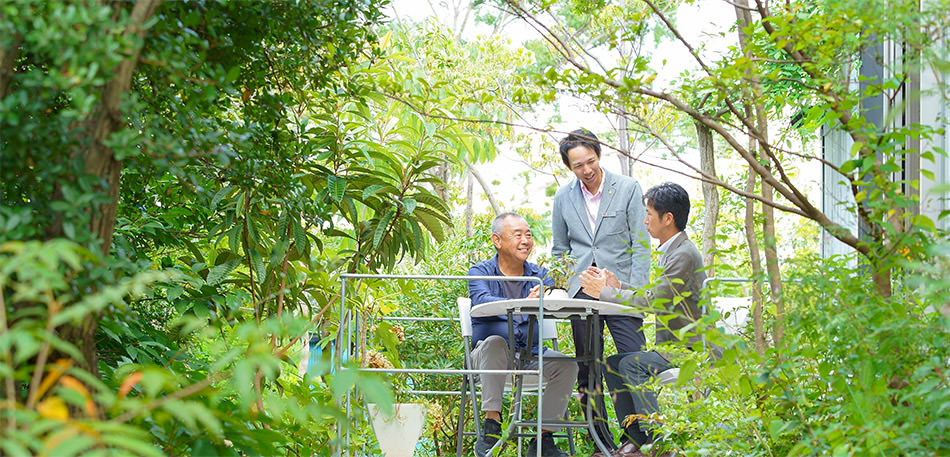- 舘:荻野さんのまちづくりの意識は、庭づくりにもよく表れていますよね。その地域の景観や素材を生かしたり、地元の職人さんと一緒にお仕事されたり、地域に根ざしたお仕事をされている印象です。私たちハウスメーカーも地域に根ざした家づくりをしていきたいと考えています。