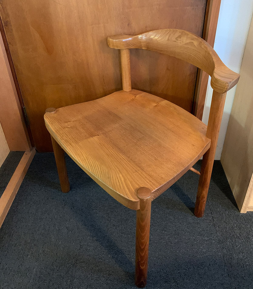 奧村昭雄さんの代表的な家具『ハンペンチェア』。ゆったり座れて疲れにくい