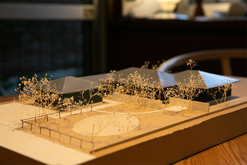 逆に、「あなたの家はこれです」と自信を持って言えるものを提示できれば、大抵がいい建築になります。だから私は、100分の1のサイズの平面図、配置図、立面図、模型、インテリアのスケッチなどを用意してプレゼンテーションに臨みます。