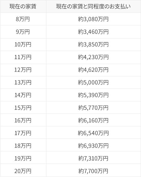 まず、現在お支払い家賃と同程度の返済額であれば、いくらの住宅ローンが組めるのでしょうか。