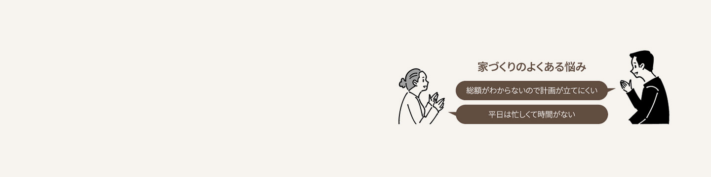 完全に自由設(shè)計(jì)の注文住宅をつくるには、まだ形にないものを一歩一歩詰めていくプロセスが必要です。暮らしへのご要望を伝える打ち合わせから、設(shè)計(jì)期間を経てプラン提示があり、そのプランを見て追加要望などを詰め、再度設(shè)計(jì)期間を経て修正案が提示され、この段階でやっと金額の提示があります。金額によっては再度調(diào)整が必要となる場(chǎng)合もあります。このように毎週末、さまざまな打ち合わせが入ると、子どもと遊ぶ時(shí)間がないなどの悩みの聲もお聞きします。
