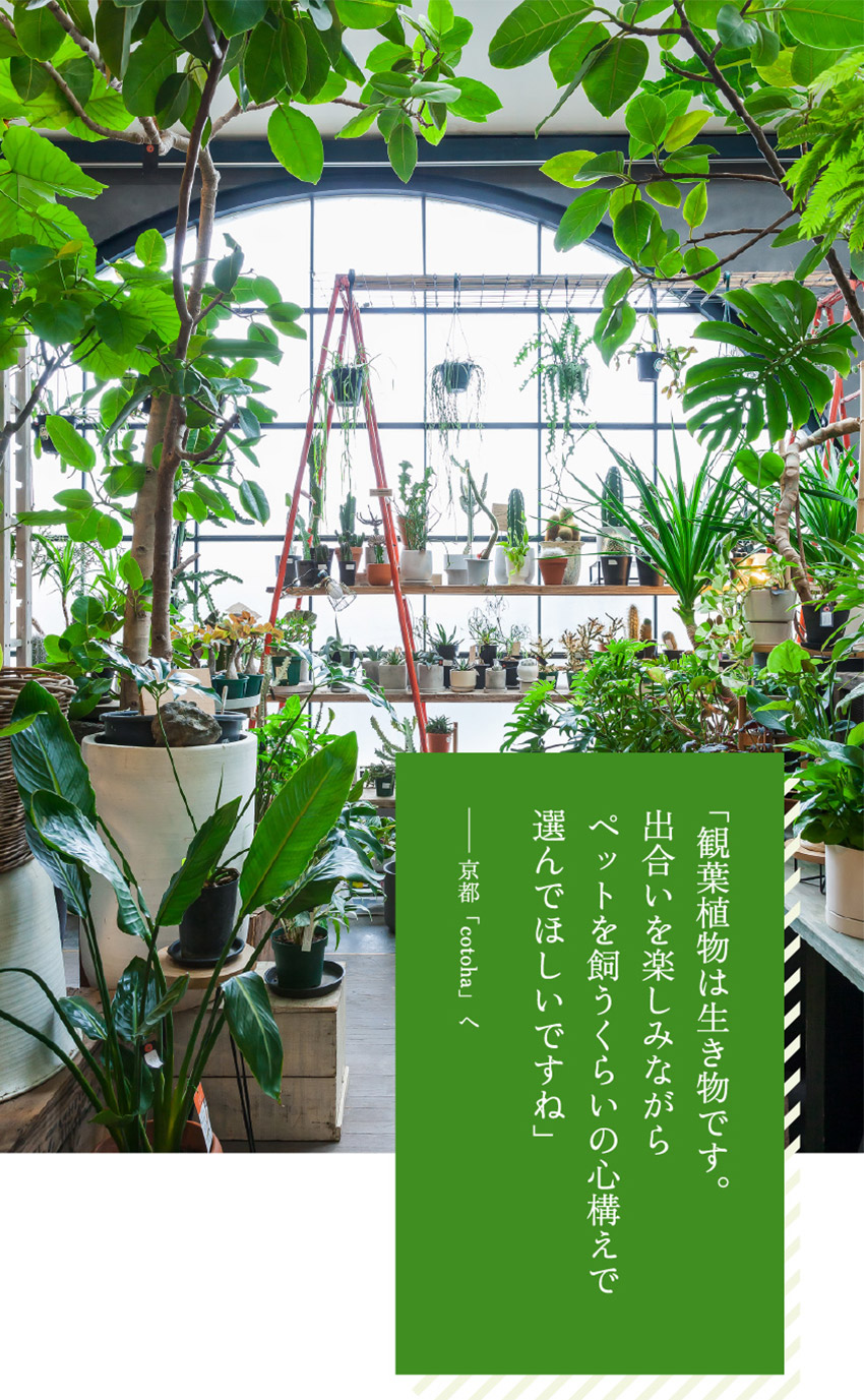 「観葉植物は物ではなくて生き物。犬や貓を飼うのと同じような心構(gòu)えは必要だと思います」。エサを與えたり、散歩に連れて行ったりするように、手をかけ続けることは必須。