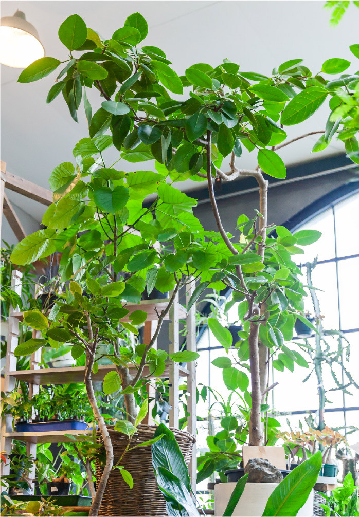 店內(nèi)にあるたくさんのグリーンの中から選ぶのは至難の業(yè)のように思えます。谷奧さん流の選び方のヒントは森にあり!「森って癒やされますよね。林はどうでしょう?手入れされてきれいだけど、そこまでではない。そのままの、整えられていないところに癒やされるんだと思います」