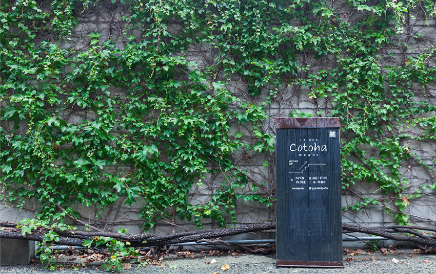 緑の小道に沿って進むと入り口が。表通り沿いには生花等を扱う姉妹店「Blowmist BOOM」も。