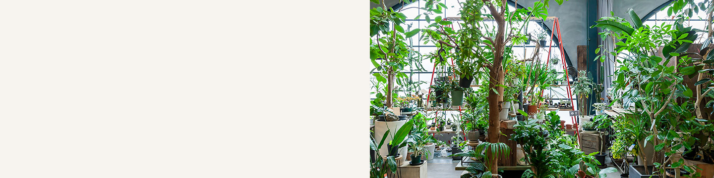 大きさも種類もさまざまな観葉植物が置かれた店內(nèi)。通路に沿って回るのが楽しい。