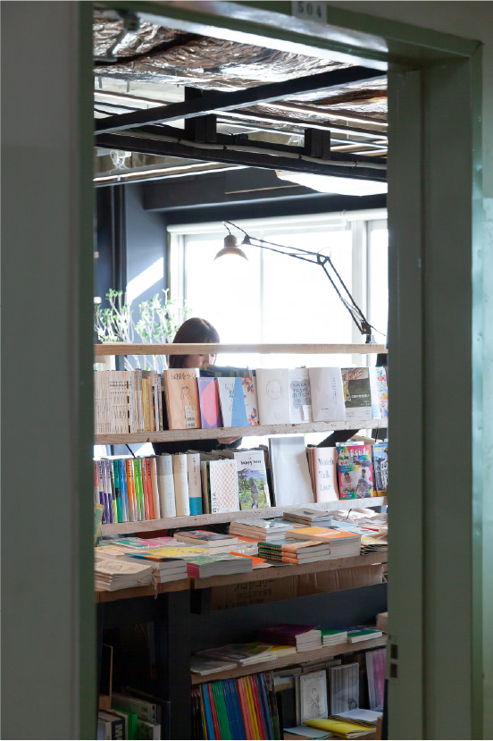 エレベーターを降りるとドアの向こうに本屋さん! 隠れ家のようで好奇心をそそられる。
