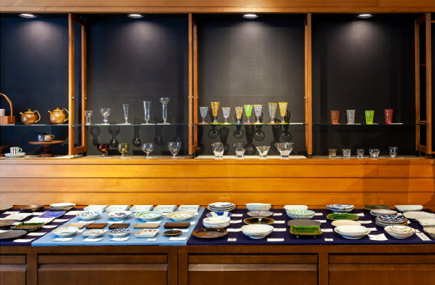 最近はガラス器も要望があって通年置いているそう。店內では手荷物を置いてゆっくりと見て回れる。気に入ったら手に取って確かめられるのも実店舗の良いところ。