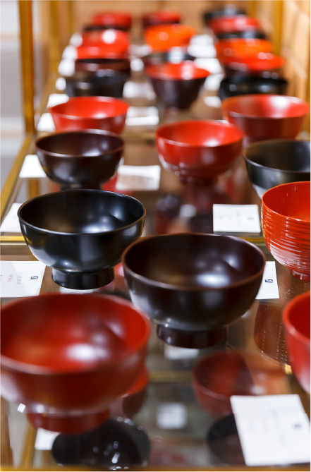 色や質感、朱塗の微妙な違いも確かめながら選べるのがうれしい、浄法寺塗りをはじめ漆器も豊富。