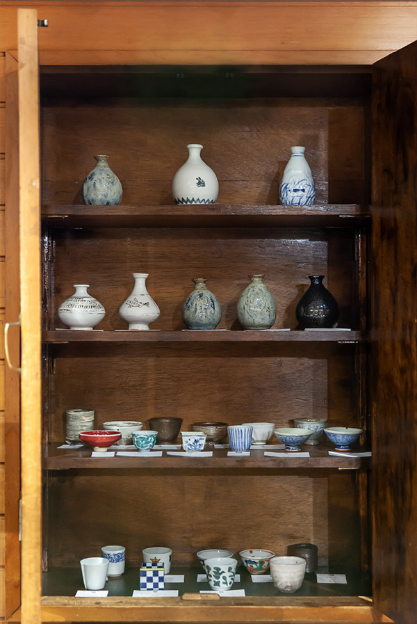 店內の壁面にある小さなトビラを開くと、おっ!と聲が上がる酒器コーナーが隠れています。左黨ならずとも、コレクション感があって見入ってしまいます。わが家にもこんな仕掛けがあると、おもてなしのシーンが盛り上がるかも?!