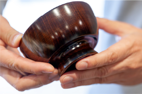 「卓上に並んだときに見た目が普通の汁わんというのがいいでしょう。みそ汁って、取っ手が付いたおわんより手に持って飲みたいし、漆のもので飲みたいですよね。この汁わんは金沢の壽司屋さんでも使われています。酔ったお客さんがこぼさないようにって(笑)。皆さん、見て気づかない、持ってみて、あ、指がかかるって気づくらしいですね」