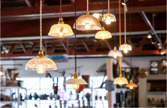 懐かしさを感じる古いランプシェードもさまざまなタイプがそろう。
