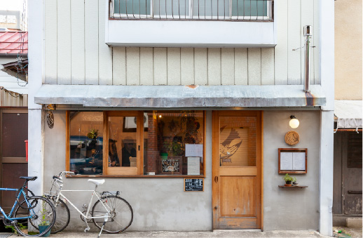 一杯のカップから生まれる暮らしの豊かさを考える、そんな人に寄り添う一杯を目指して自家焙煎豆のコーヒーを提供。東京から移住したオーナー?黒鳥伸雄さんが2019年にオープン。メニューの看板やインテリアの一部に古材が使われて落ち著く空間に。