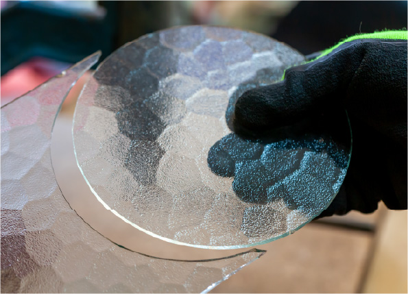 円形にカット。縁に研磨をかけて整えてから熱を加える。