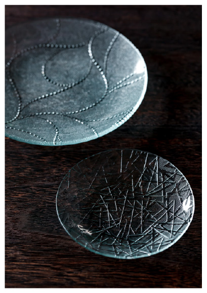 昭和型板ガラスを繊細な皿に