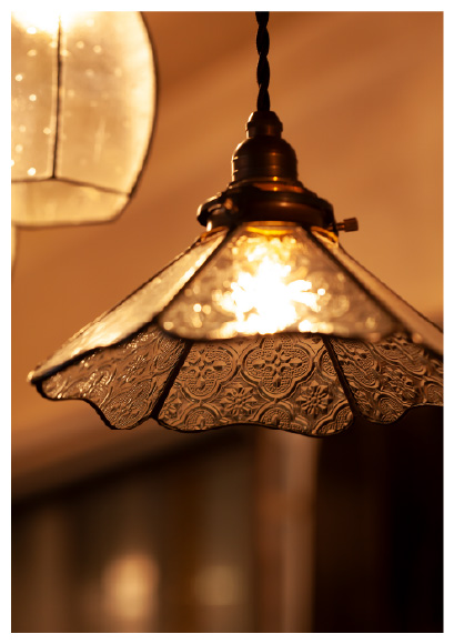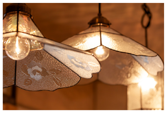 海外輸入ガラス「フローラ」を使ったランプシェードも。