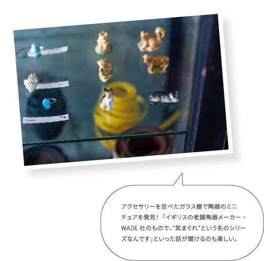 ビンテージに慣れていない方は、何か一つ雑貨を選んでみては?と提案する細(xì)川さん。選んでみたものが引き立つように、少しずつ周りも変えていくことで好きなビンテージがわかってくる、とも。