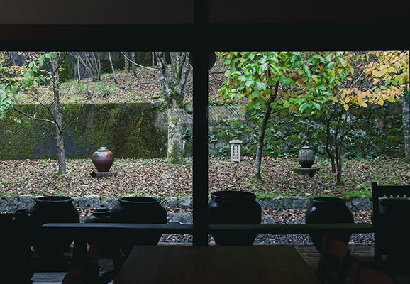 今の巖井窯の姿も、実は山本さんが42歳のとき、大雨水害に遭い工房も窯も流された後、ゼロからつくったもの。「若い頃、自転車で韓國を旅行したときに見た地主さんの家がこんなふうに庭を囲んでいて、いい気持ちでね。それで、いつかつくりたいなって思っていた。いい機會だと思って(笑)」。そこから8年の歳月をかけてつくり上げ、1998年にクラフト館 巖井窯として開館しました。