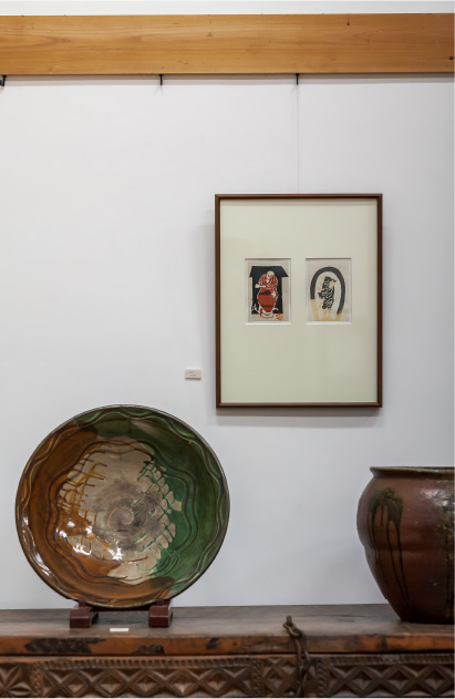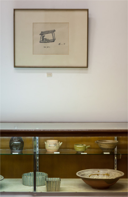 「ものは単にものではない」と言う山本さん。たとえば、若い頃に吉田璋也の元に集まった先輩たちと行った骨董店で大奮発して手に入れたもの、作品展が終わってできたお金をそのまま持參して買い求めたもの、あるいは先輩宅にあるのを何度も何度も見に行き、しまいに譲り受けることができたもの、また、旅先で目にしてどうしても気になったもの…。そんなさまざまな縁をつないだものたちは、ここを居場所に、どこか伸び伸びと、生き生きとした表情で並んでいます。