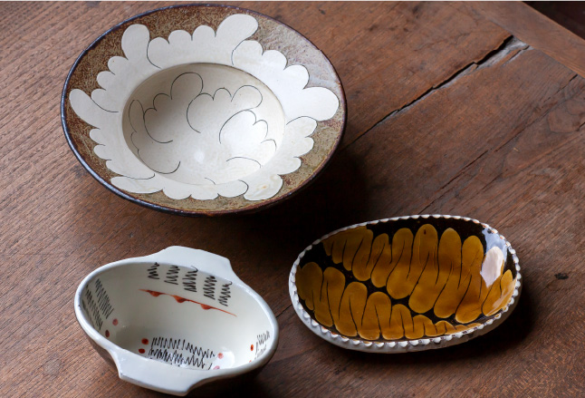 伸びやかでおおらか、モダンな空気感が漂って、すぐに使ってみたくなるうつわたち。