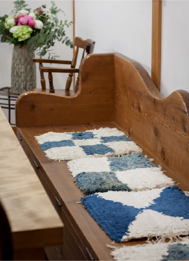 テーブル3卓のこじんまりしたスペースはのんびりと落ち著ける空間。調度品はどれも山本教行さんの目で選んだものばかり。若い頃に手づくりしたというベンチは、座面を開くとベッドにもなる工夫が施されている。店で使い込まれていい色に。