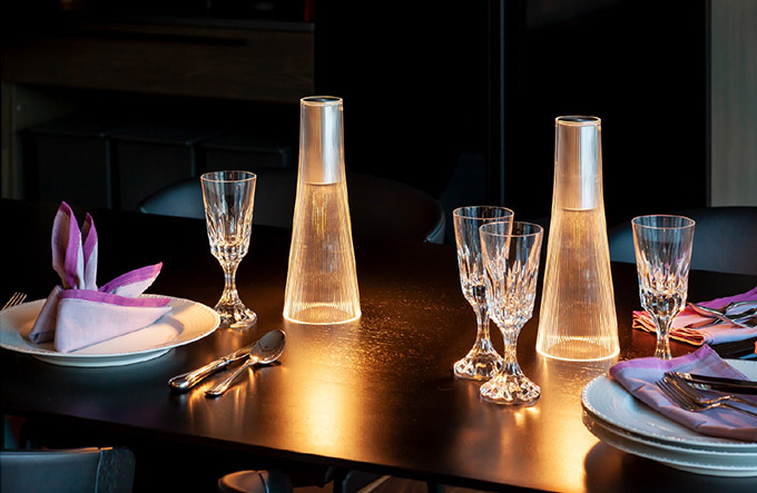 おもてなしや家族のお祝いの日のダイニングに、ポータブルライトが重寶します。トップライトを消して、キャンドルのような雰囲気のポータブルライトをテーブル上にセッティング。いつものダイニングがぐんと落ち著いた印象に変わります。