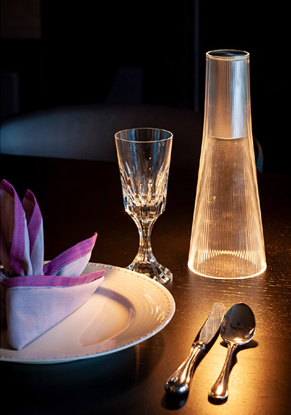 ここでは円錐形が美しい表情をつくるポータブルライトを採用。4段階の調光ができるのでシーンに合わせて設定できます。